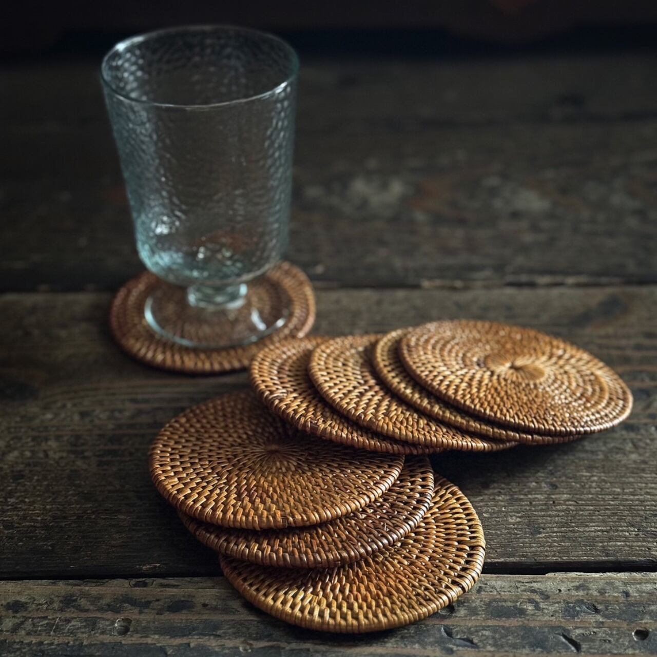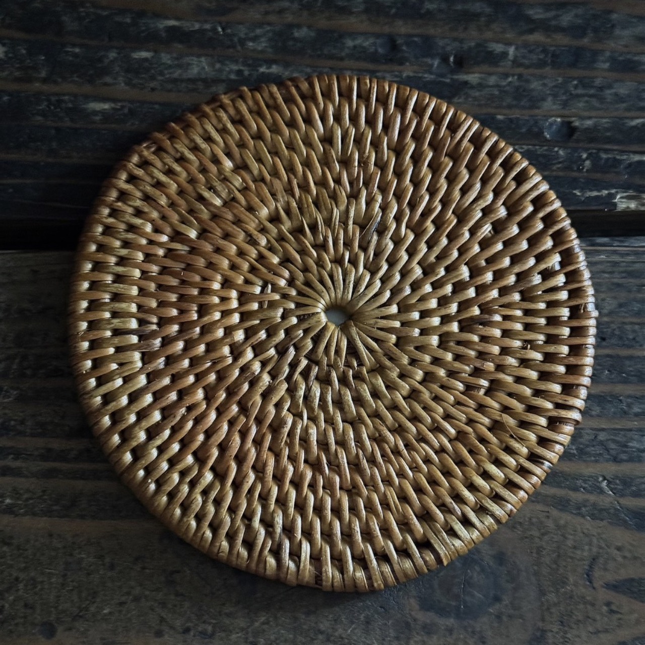 硬くてしっかりと手編みされたアタ素材のコースターです。丈夫で長持ちするのが特徴。グラスでもお湯呑みでも合わせやすくて人気です。