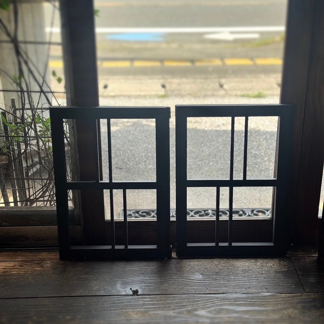 昔の木枠戸になります。ガラスは入っていません。木枠だけの状態なので立て掛けるだけじゃ無く、