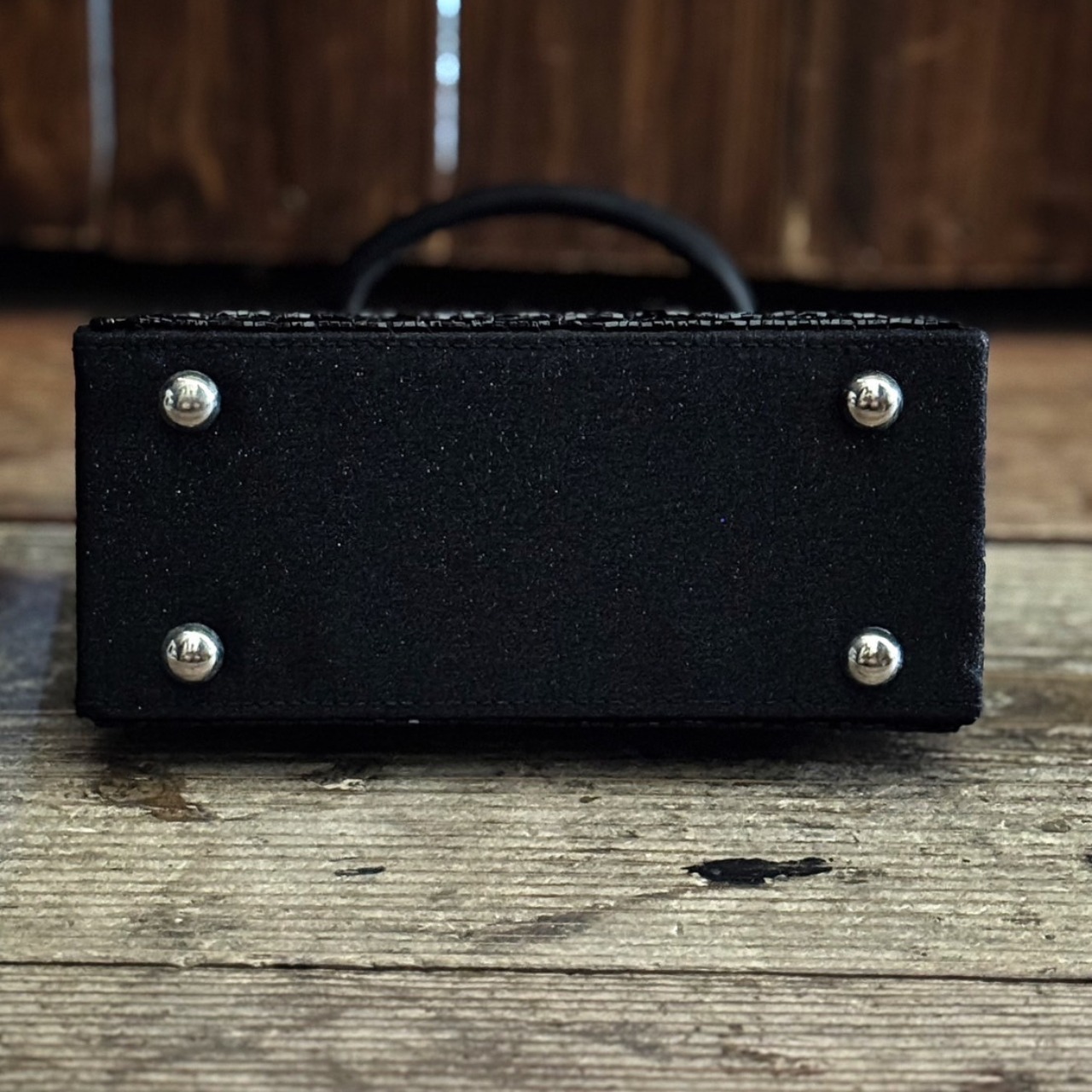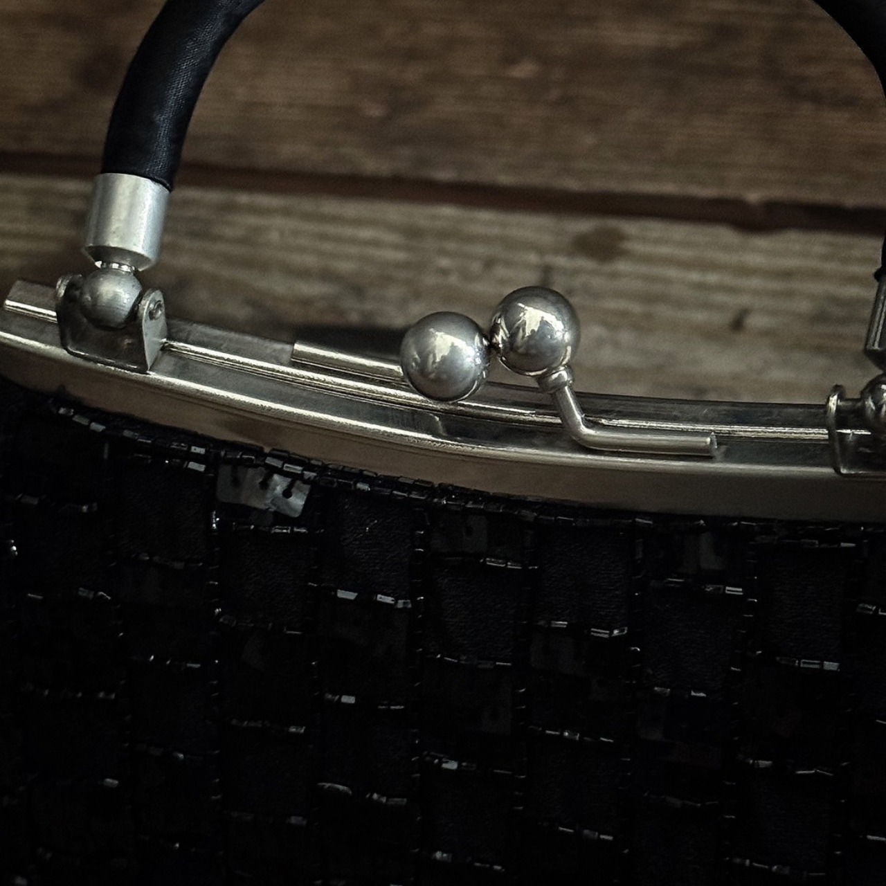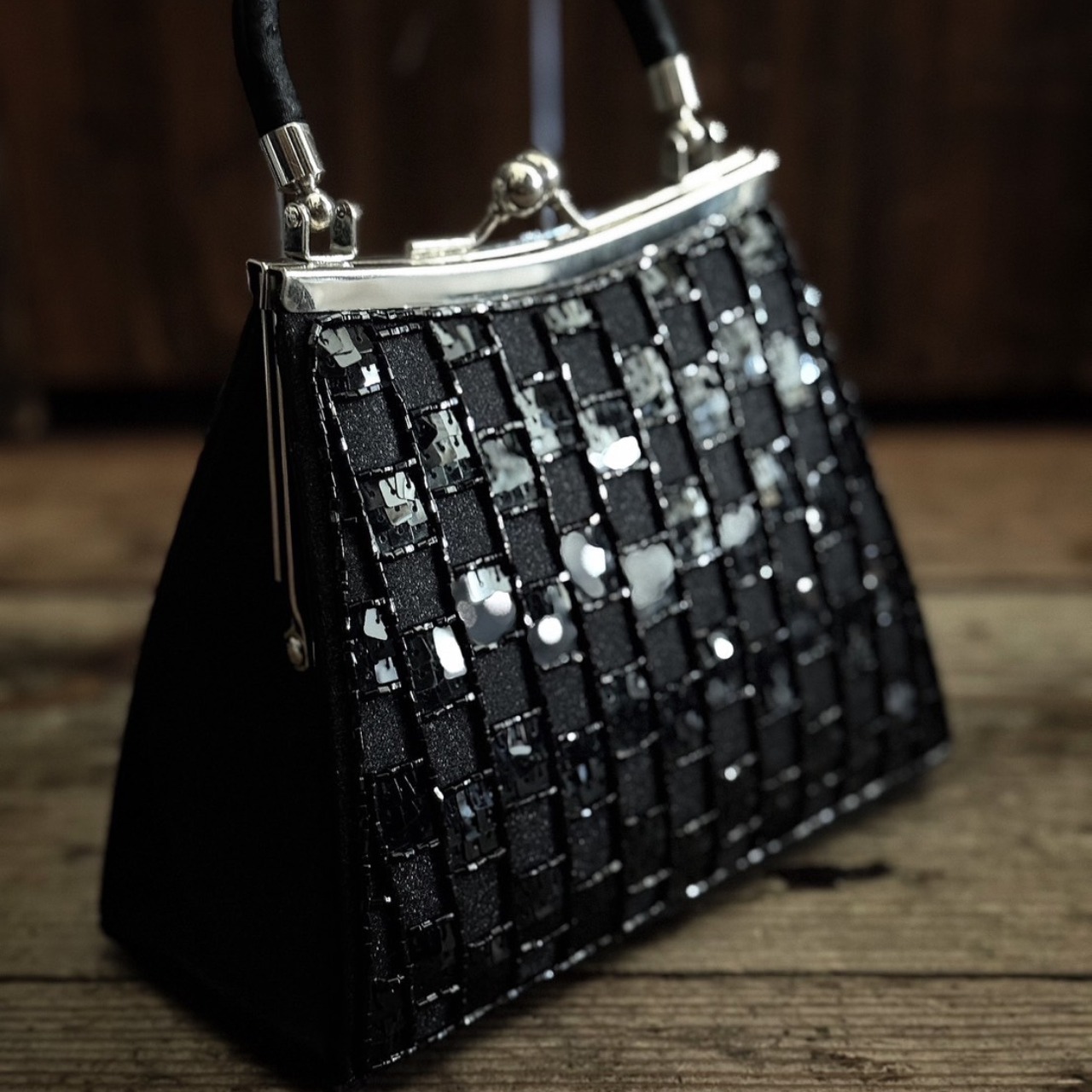 連なる四角いデザインに、互い違いに取り付けられたスパンコールがとても素敵なハンドバッグです。サイズは小さめですが上品で存在感あります。