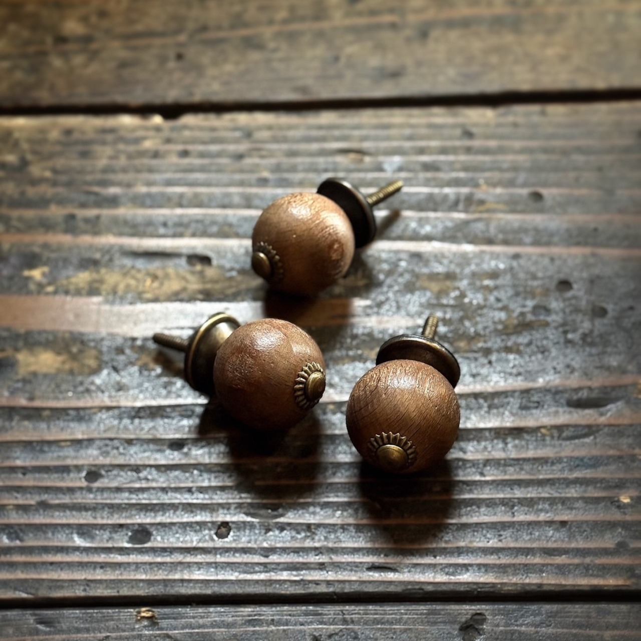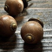 ツマミ部分は木製。金属部分は真鍮色で、ナチュラルシックなコンビネーションです。玄関の靴箱、洗面台の引き出し、キッチンのシンク下収納棚、食器棚の引き出し…その他にもツマミを使っている部分を付け替えるだけで簡単にイメージチェンジ出来ます。