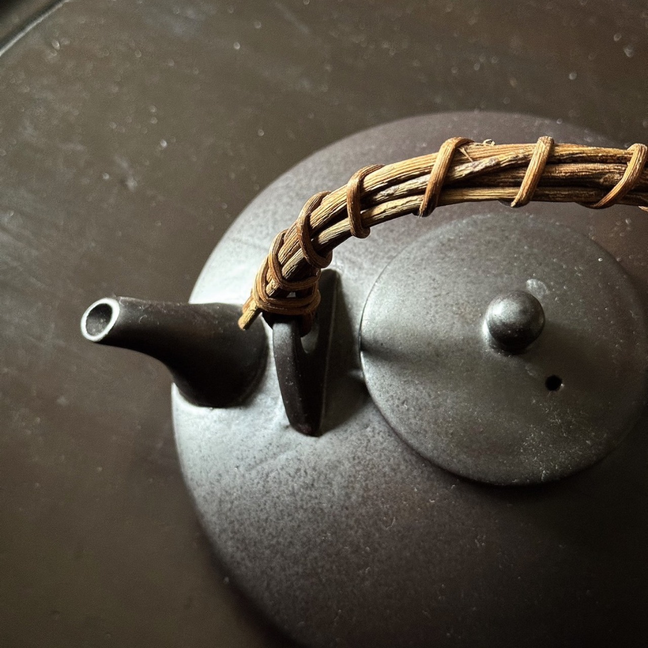 底は小さな三つ足が付いています。持手は蔓を編んで取り付けられているので素朴でとても素敵です。