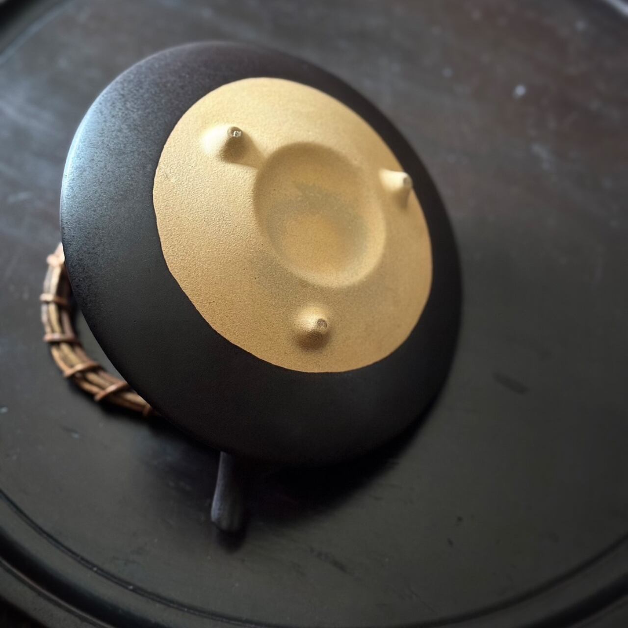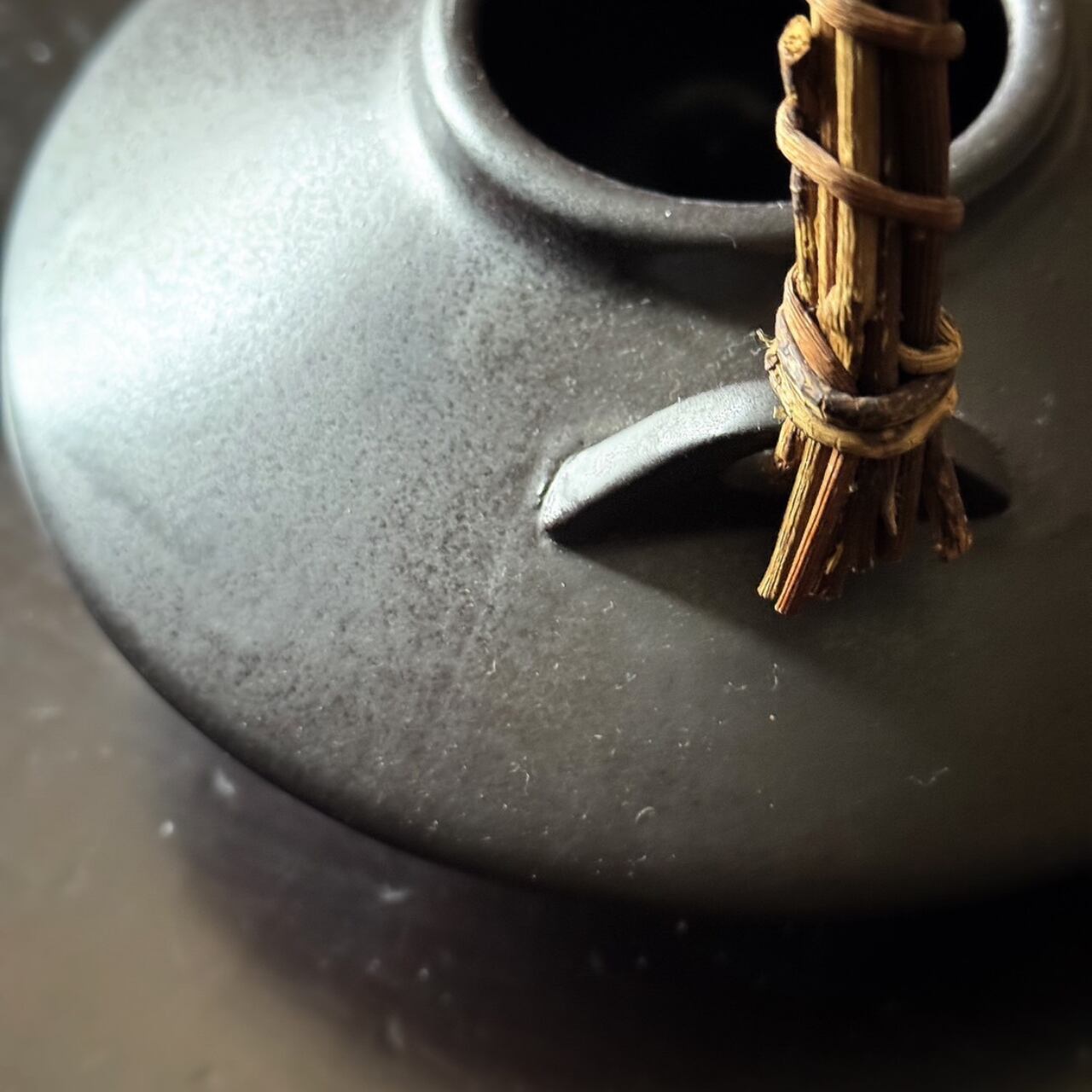 シンプルでどっしりとした佇まいの、陶器の平燗瓶です。本来、お酒を温める時に使う物ですが、お酒以外でもお茶でも問題無くお使いいただけます。