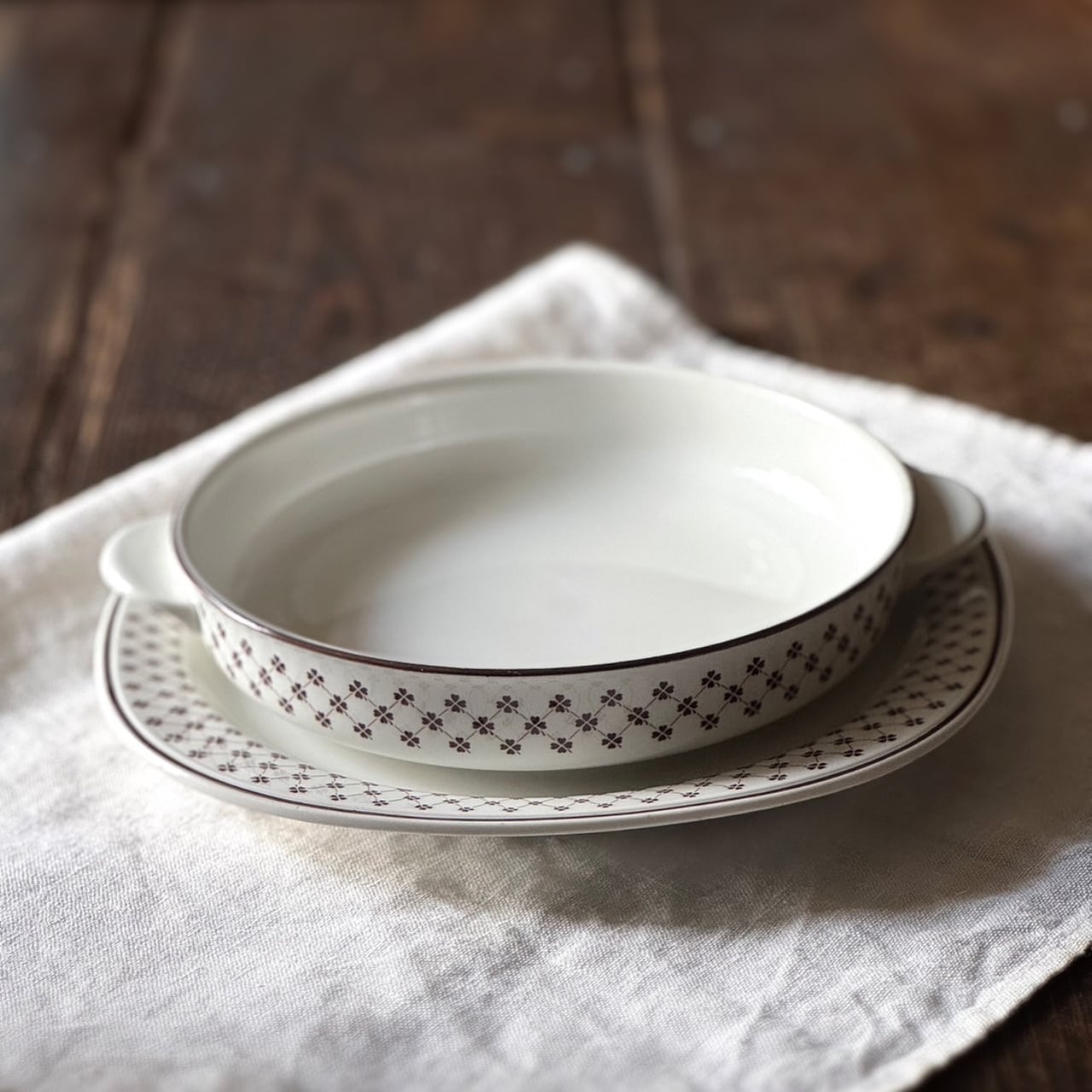 サイズが大きめなので、両方共メインディッシュでお使い頂けます。平皿に若干の小傷がありますが目立つ程では無いかと思われます。