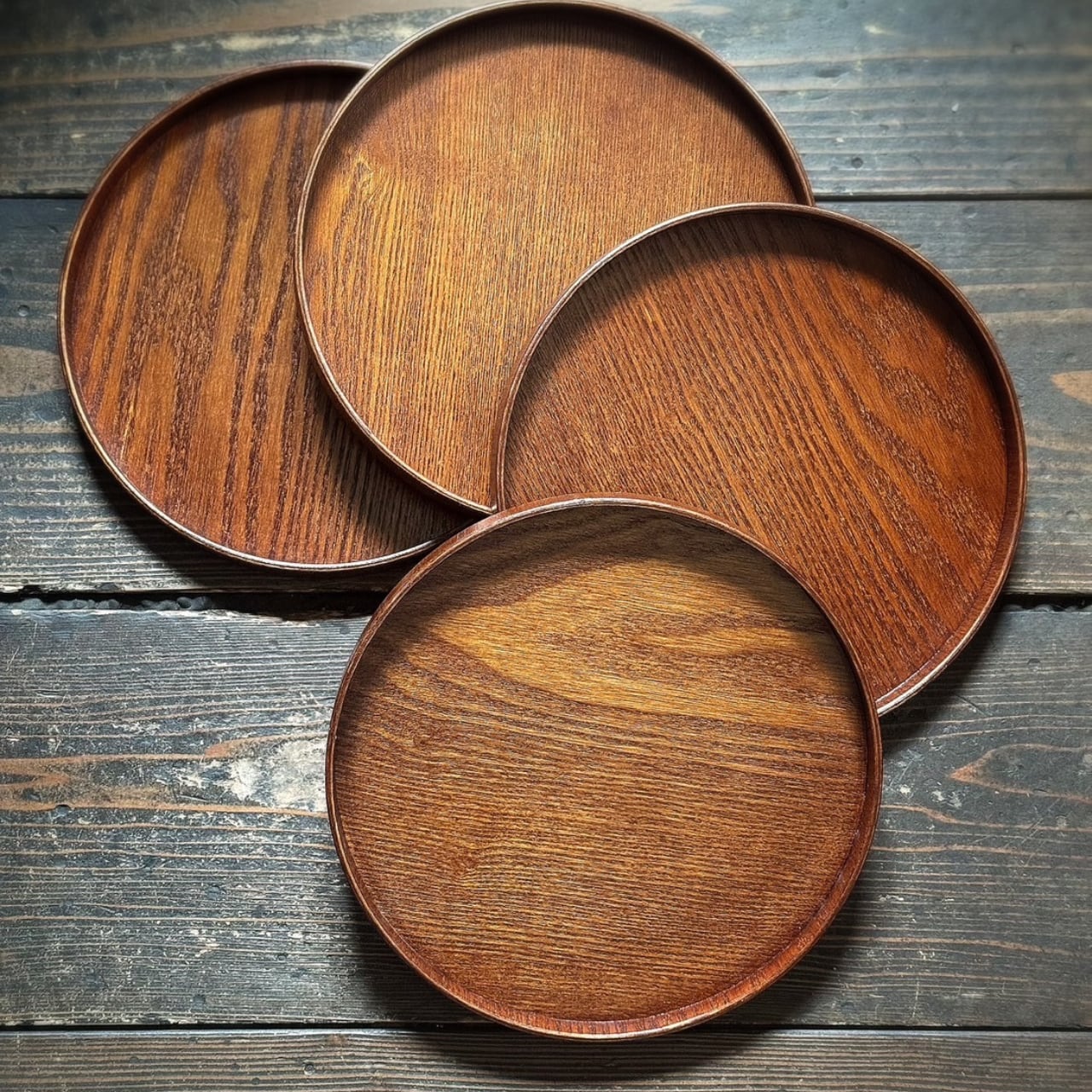 木目が美しい丸盆です。